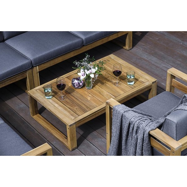 Коллекция BOOKA. Материал — массив акации, отделка экомаслом под натуральный тик. Анодированная фурнитура из нержавеющей стали. Подушки в комплекте, ткань подушек – Olefin, цвет подушек темно-серый графит.< ">